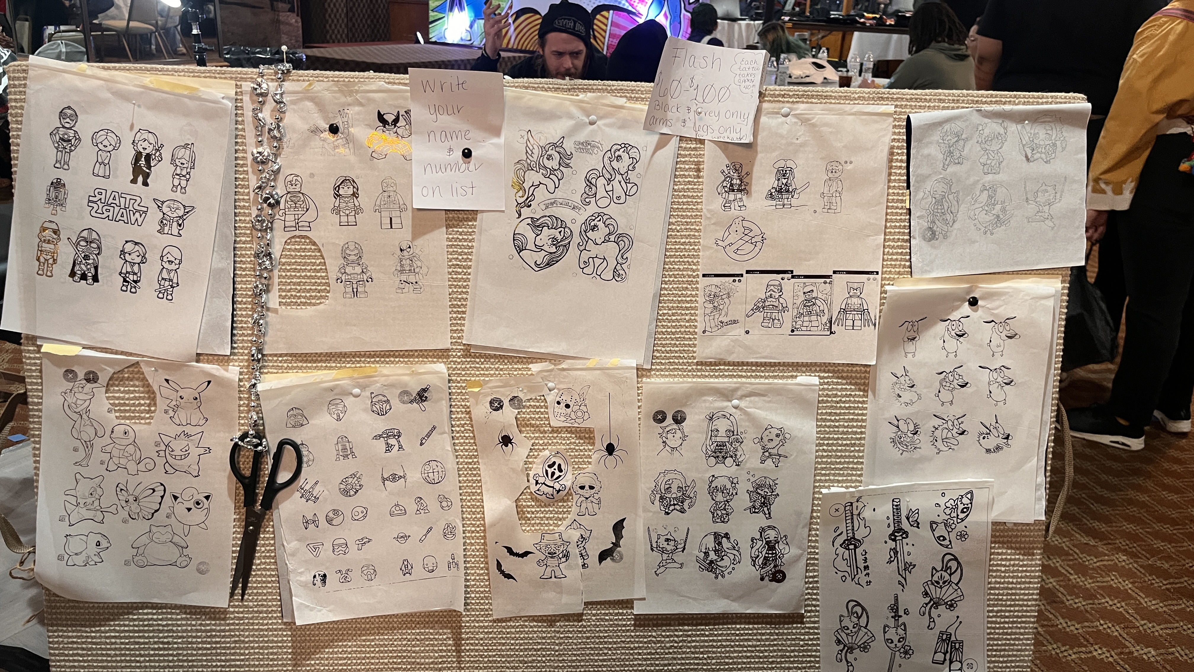 KaSandra Compton, who goes by Chaos Kass, is the former owner of Queen City Ink Tattoo and Tarot of Olyphant. She offered tattoos during the event. Attendees could write their name and phone number down for a tattoo from her flash sheet. The available tattoos included "Courage the Cowardly Dog," "Demon Slayer," Lego Star Wars and superheroes.